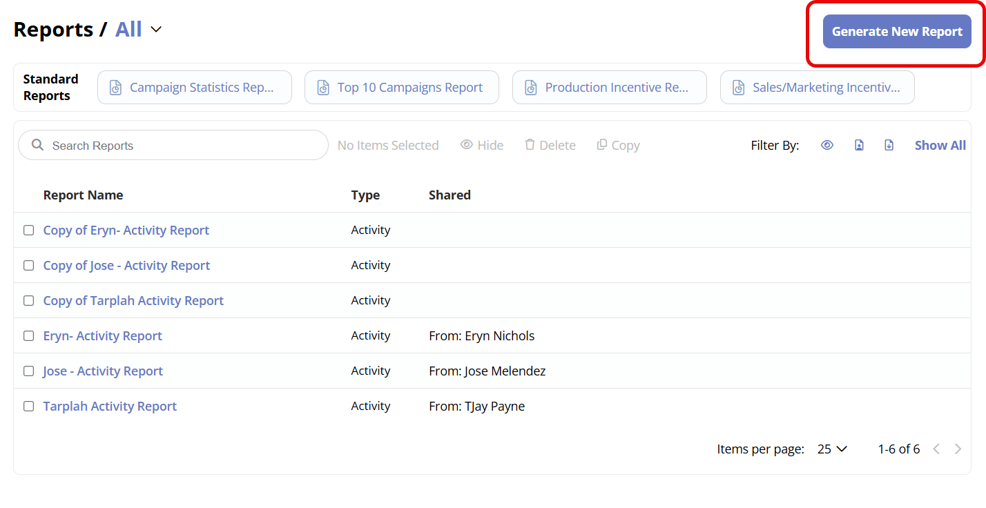 - Select the Generate New Report button in the upper right corner