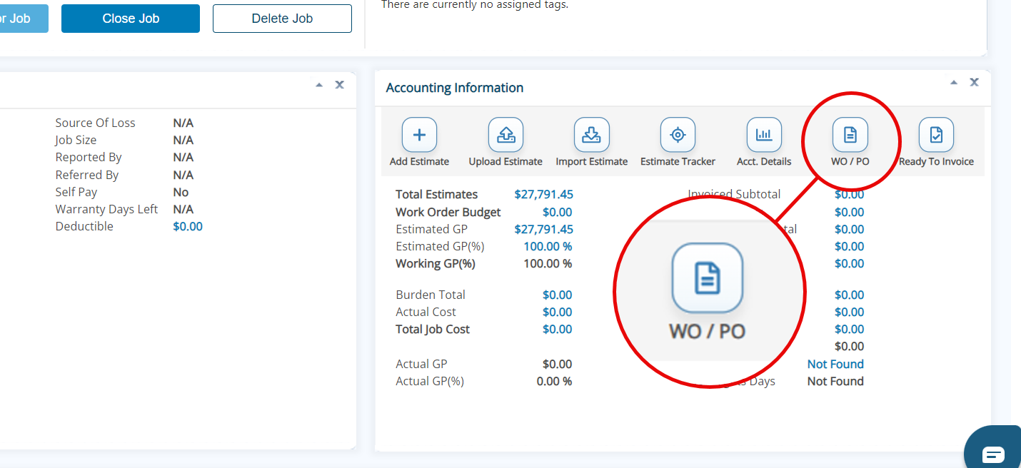- In order for Work Orders to be generated from an Estimate, there has to be Line Item information on that Estimate.