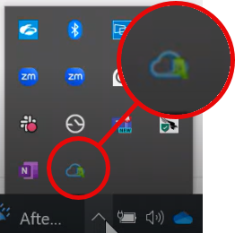 - Click on the "^" up arrow in the bottom right-hand corner of your desktop (to the left of your PC clock and date)
