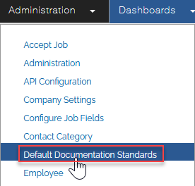 - Navigate to Administration and select Default Documentation Standards from the dropdown.