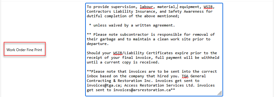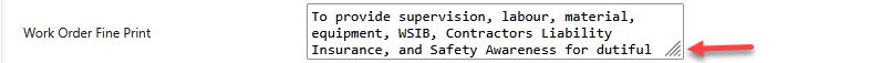 - Scroll down until you reach the Work Order Fine Print section.