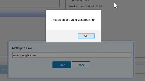 - It must be a valid link, otherwise you may receive an error that says "Please enter a valid Matterport link".