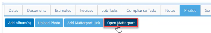 - Once a valid link has been saved, you will see an Open Matterport button in the Photos tab.
