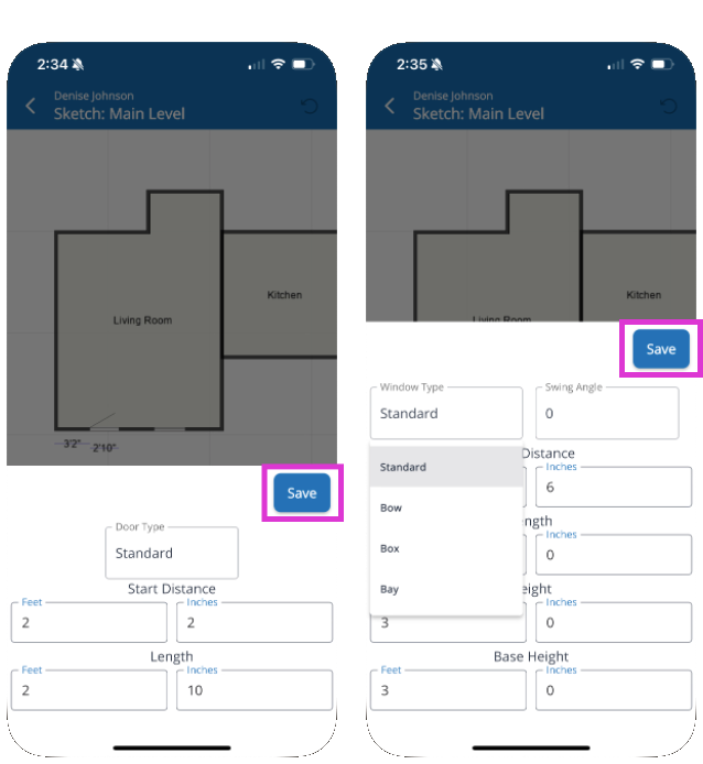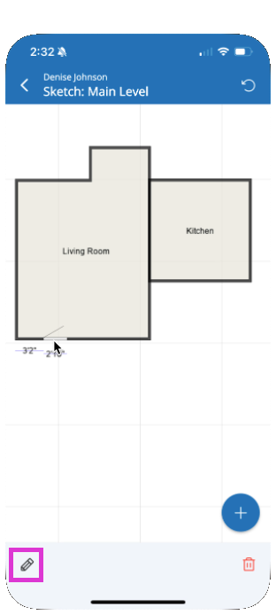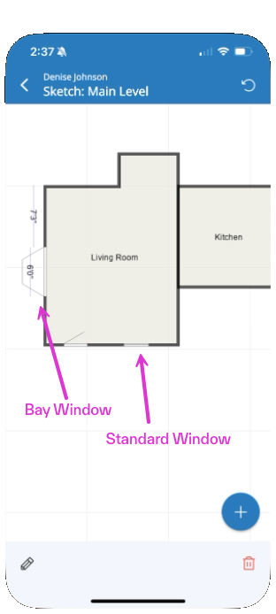 - Tap the Pencil icon to edit the door or window type and dimensions.