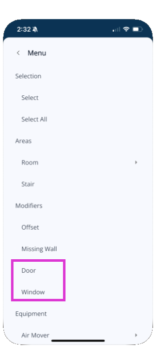 Steps to add doors and windows in Mitigate Mobile sketch: