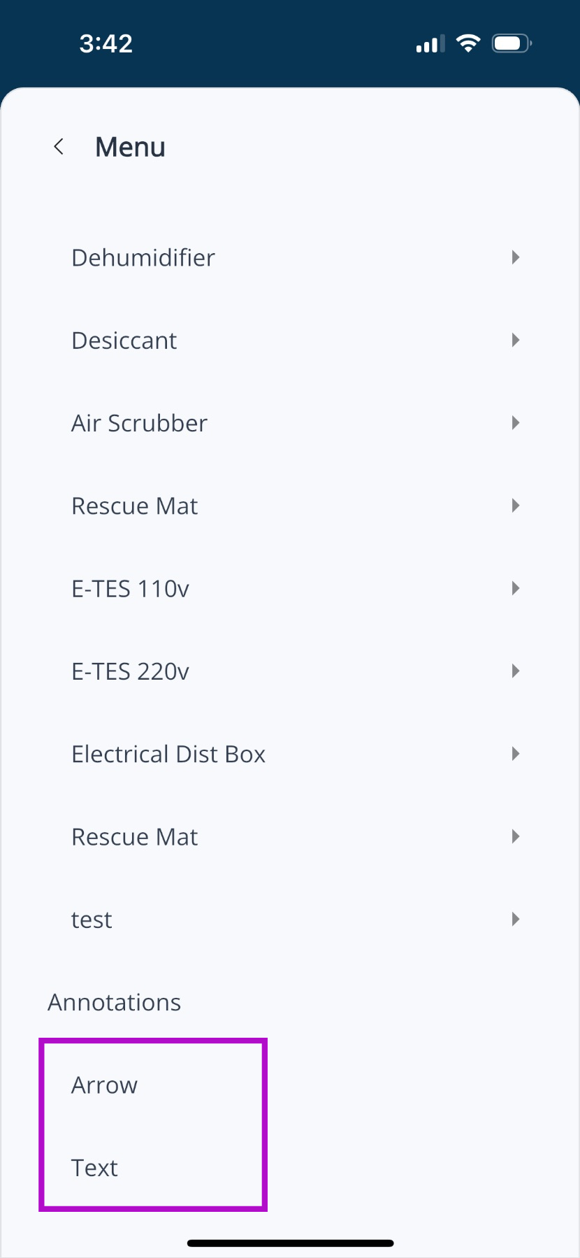 - Tap Arrow or Text to add an Annotation. You may need to scroll down the Menu and look under Annotations.