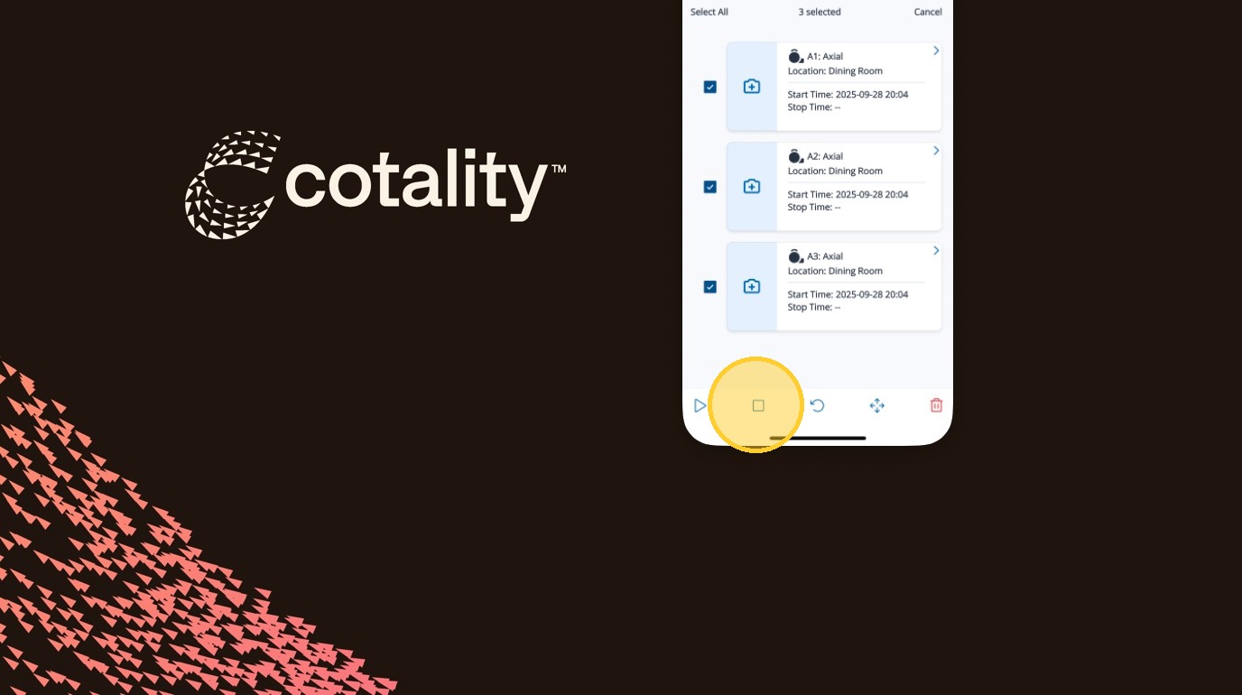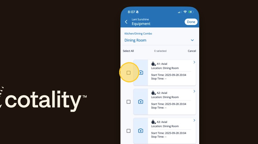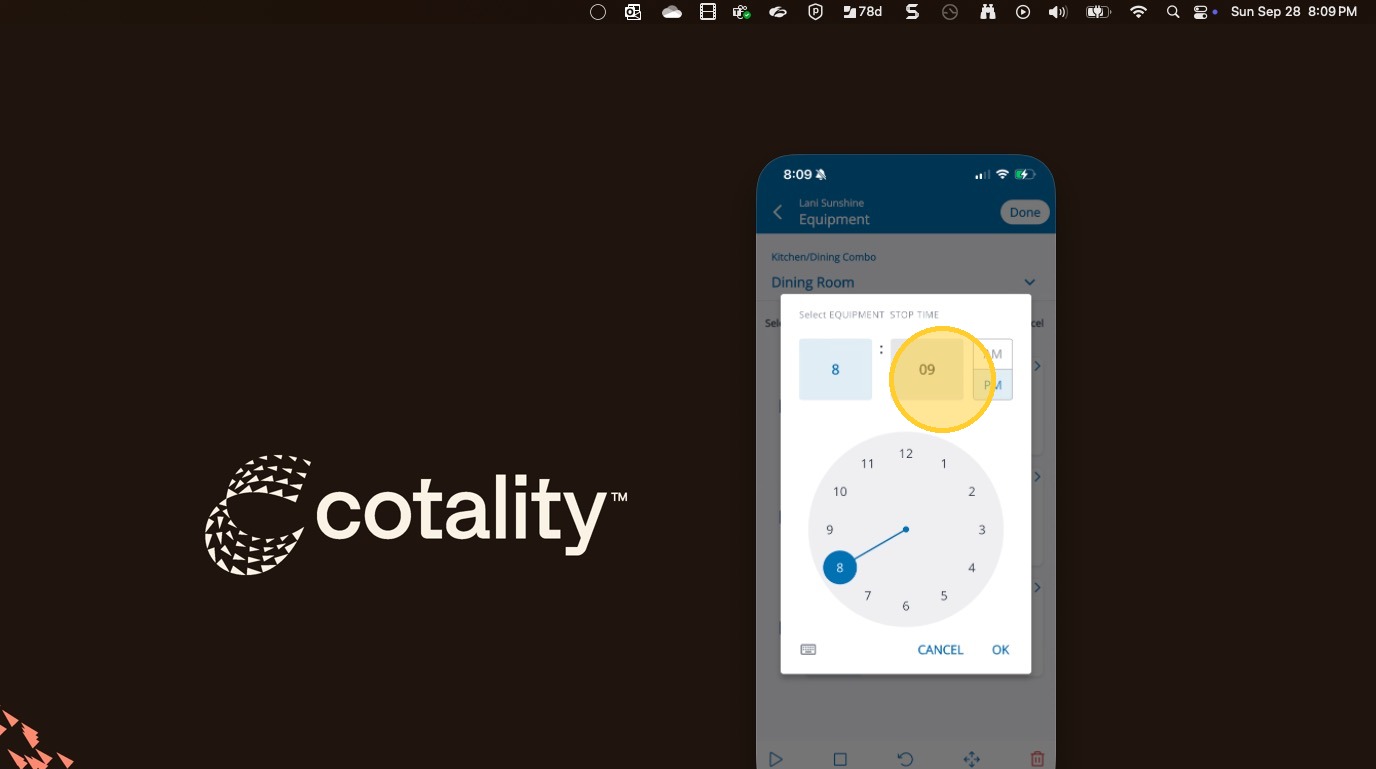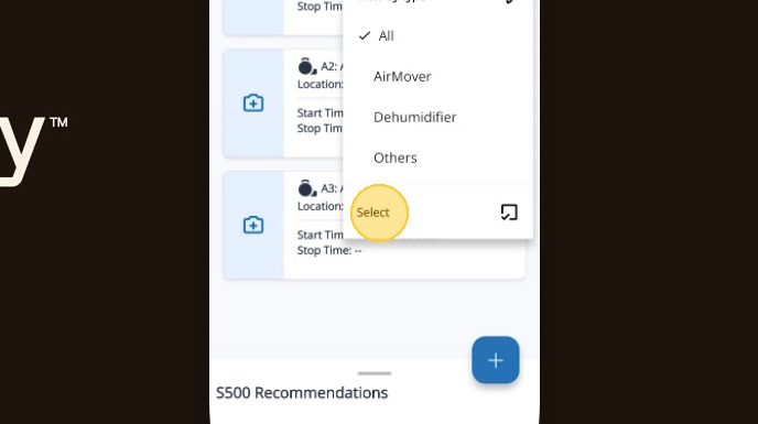 Stopping Equipment in Mitigate™ Modified on: Tue, 24 Feb, 2026 at 12:19 PM QuestionHow to stop equipment in Mitigate mobile?How to add a stop time?AnswerMitigate™| Stopping Equipment1. Tap the Ellipses to open the menu2. Tap Select3. Select each piece of equipment by tapping the checkbox4. Tap the Stop button to stop the equipment5. Set the date6. Tap OK7. Set the stop time8. Tap OKAlert: End of Process!Questions? Contact Us!