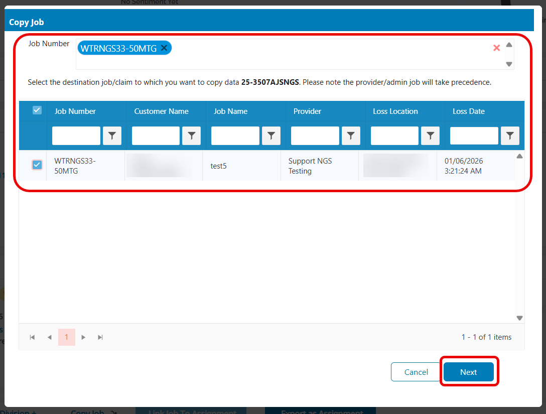 - Using available filters and the search bar, search for the job where you will copy the information too.