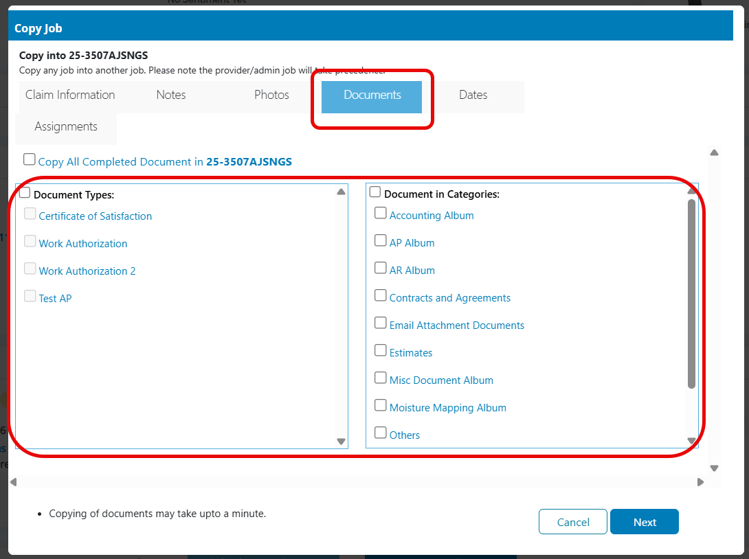 - Document Categories (the "folders") will be dropped into a new folder dedicated to the copy labeled with Misc followed by the origin job number.