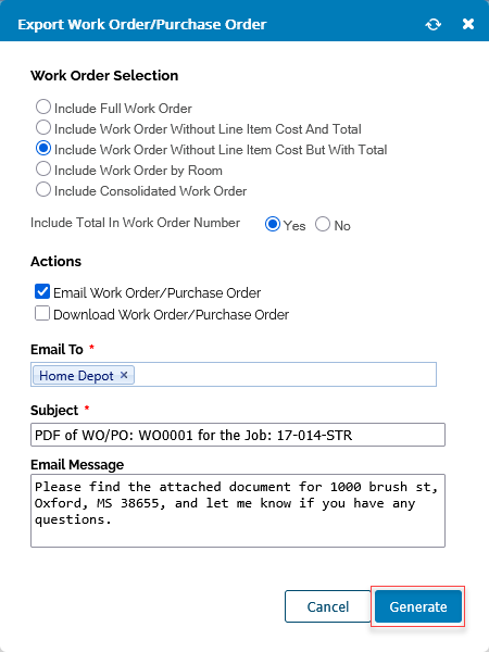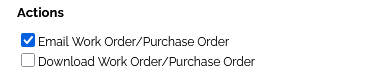 - Check the box for Email Work Order/Purchase Order.