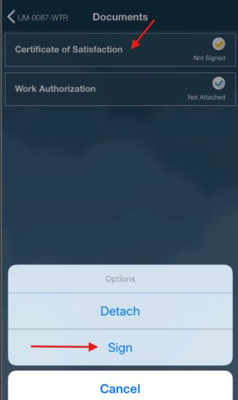 - Tap the desired document bucket (ex. Work Authorization, Certificate of Completion, etc.)